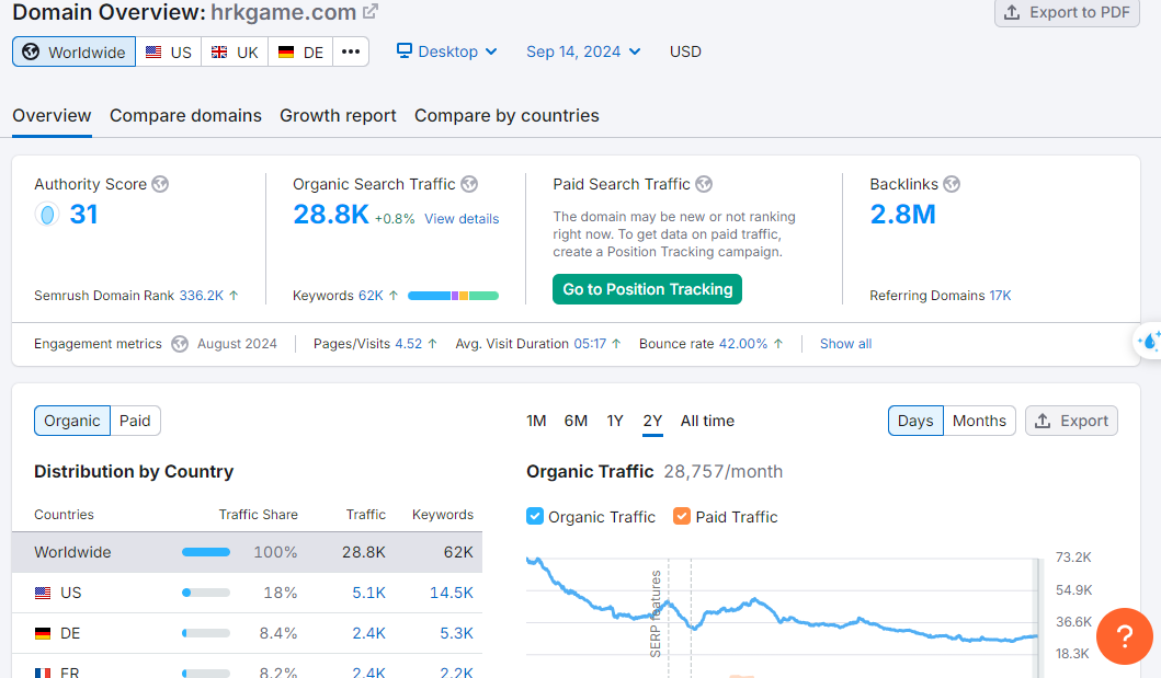 HRKGame.com is a prominent online platform in the gaming industry, offering a wide range of digital games, keys, and in-game content. Despite having an extensive backlink profile and a growing user base, the site faced challenges in fully capitalizing on its market position due to high competition and gaps in keyword optimization. Our SEO strategy aimed to strengthen HRKGame.com’s presence in organic search results, improve user engagement, and enhance site authority, particularly in the highly competitive gaming sector.